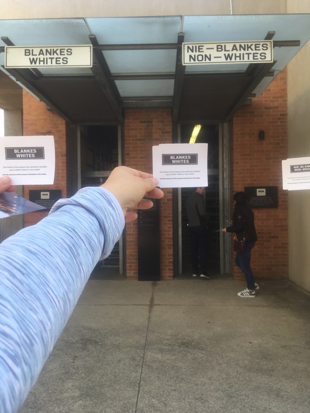 Auf unseren Eintrittskarten versteckt sich ein kleines Label, wir sehen es erst gar nicht, packen die Karten gedankenlos weg. Bis wir an zwei Drehtüren kommen, eine für „Non-Whites“, eine für „Whites“. Unsere Eintrittskarten weisen und den Weg. Willkommen in der Apartheid. Der Weg durch das Museum führt durch Abschottung, Entfremdung, durch Elend, Gewalt und schließlich einen Pfad zur Demokratie.Das Museum ist wirklich gut gemacht, voller beeindruckender Fotos und Videos. Vielleicht sogar zu viele beeindruckende Zeugnisse. Hier kann man locker drei bis vier Stunden verbringen. Tipp: Schenkt Euch die historische Einführung und die Sonderausstellung zum Leben Nelson Madelas. Dann lest lieber eine Biografie oder guckt eine Doku über Mandela. Das Ende der Apartheid hat er schließlich auch nicht alleine bewirkt.
