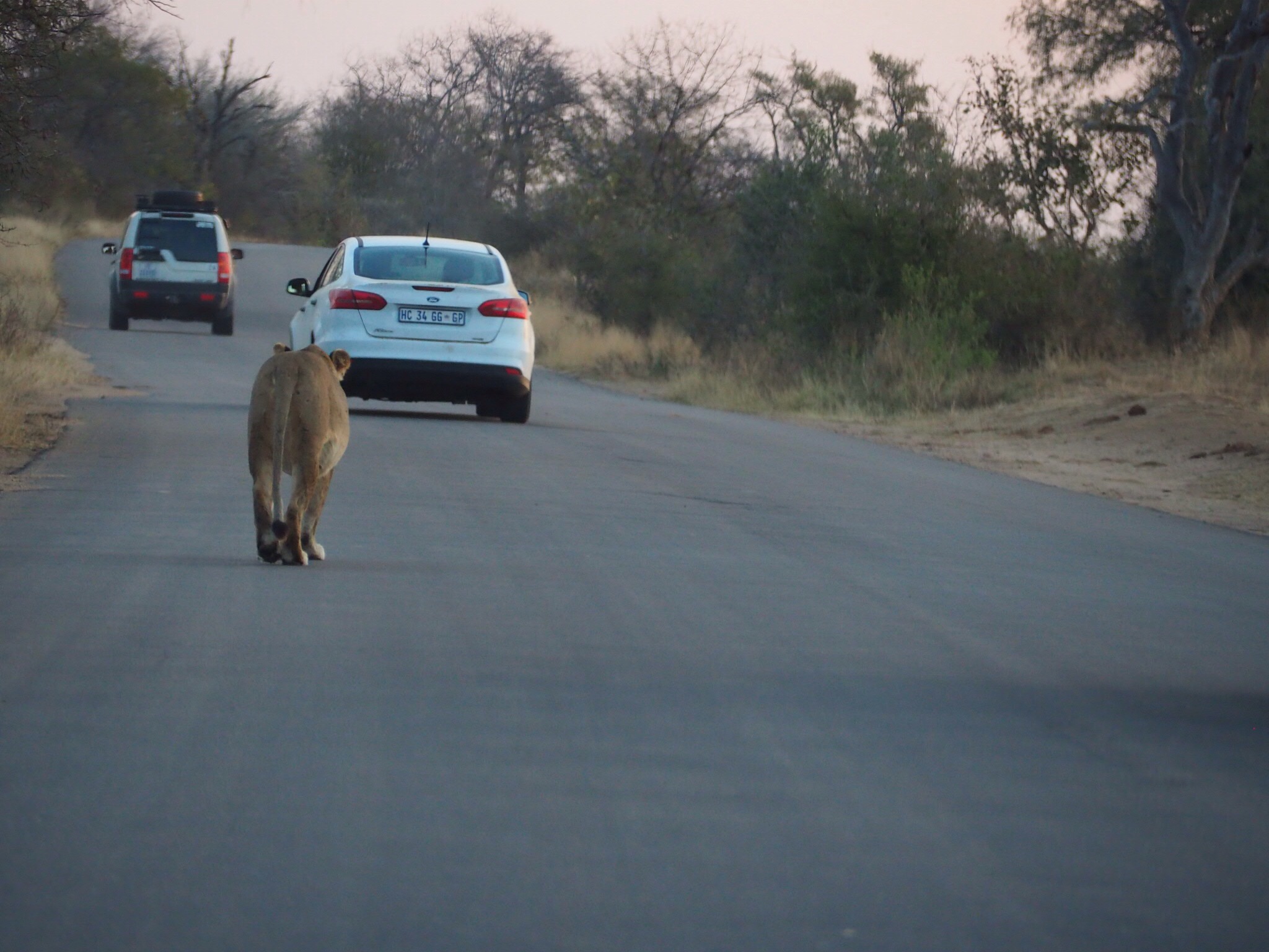 Dieses Löwenjunge ist mit seiner Mutter direkt auf die Straße gerannt – und hat erst mal einen Stau verursacht.
