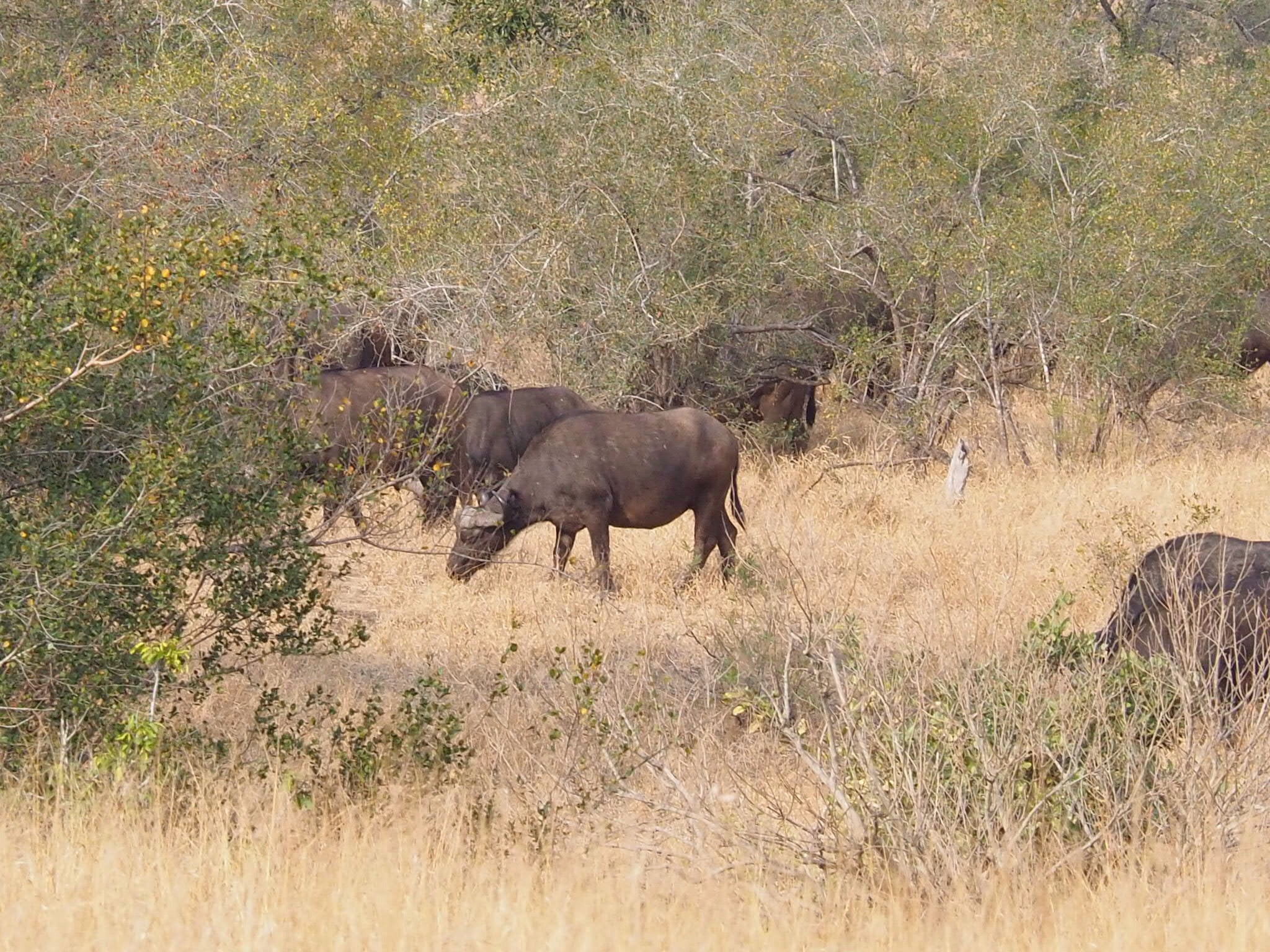 In vier Tagen haben wir die Top 5 tatsächlich gesehen – der Leopard ist uns am letzten Tag noch vor das Auto gerannt. Die Büffelherde hat in sicherem Abstand gegrast.