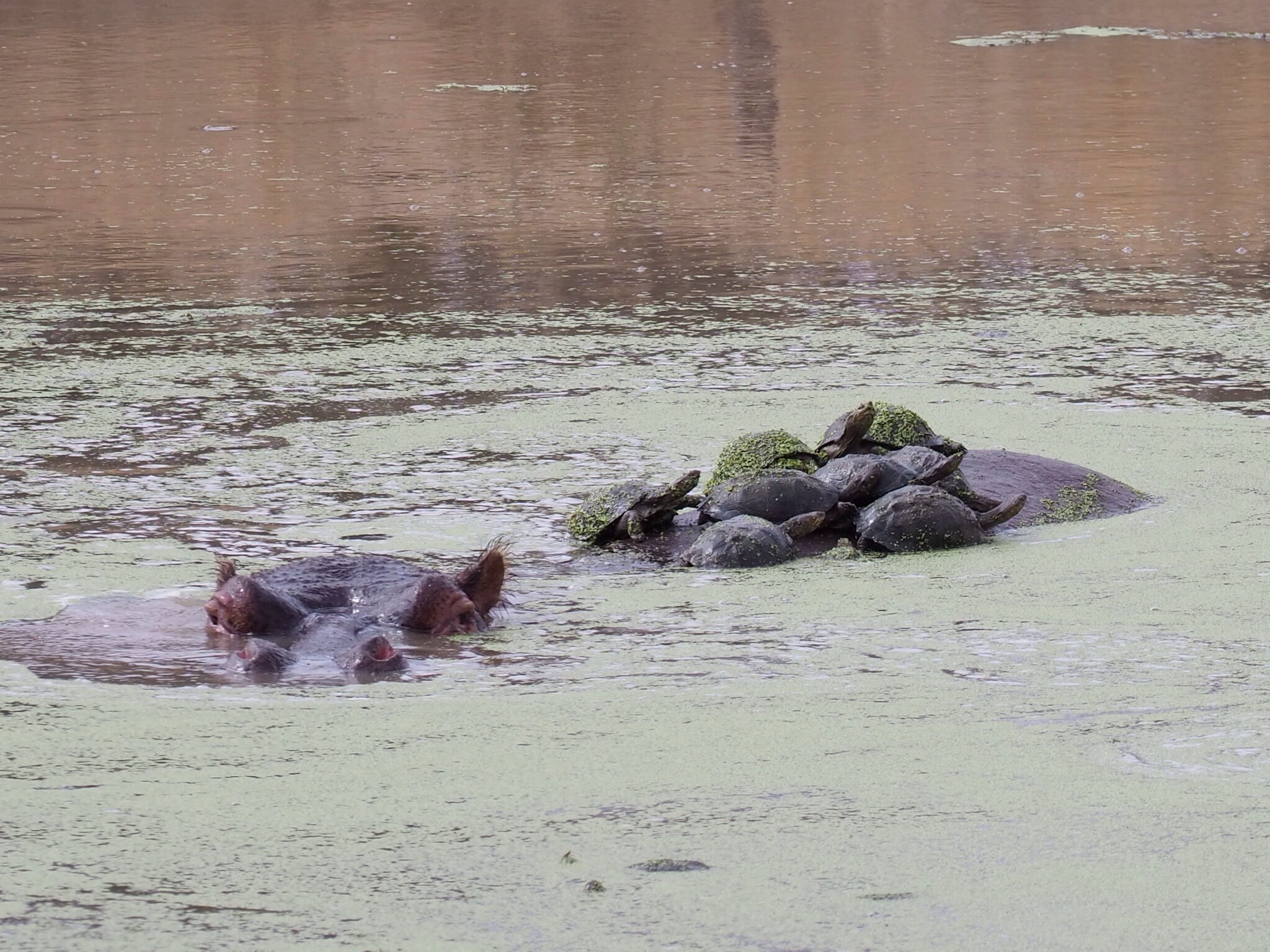 Und an beinahe jedem Wasserloch und Fluss findet man Nilpferde, die vor sich hin plantschen oder faul am Ufer herumliegen. Einzige Herausforderung: Nilpferde von Steinen unterscheiden.