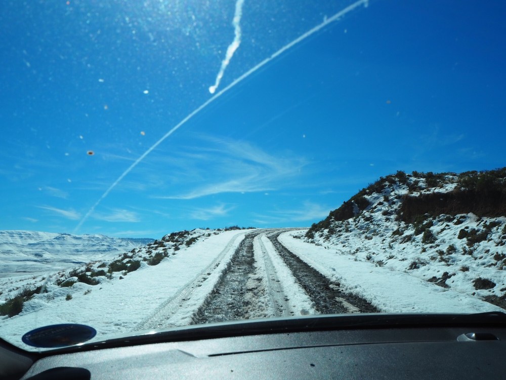 Lesotho ist zwar völlig von Südafrika umgeben, aber trotzdem ein eigenes Land. Mit asphaltierten Straßen ist hier schnell Schluss. Die Wege schlängeln sich über Bergkämme, und wir mussten teilweise aussteigen, um Steine aus dem Weg zu räumen. Da hätten wir uns doch manchmal einen Geländewagen gewünscht…